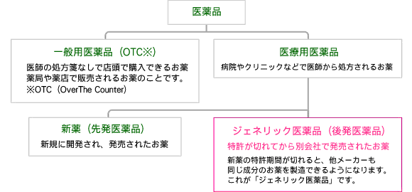 ジェネリック医薬品(後発医薬品)とは、これまで効果や安全性が実証されてきた新薬と同等と認められた
